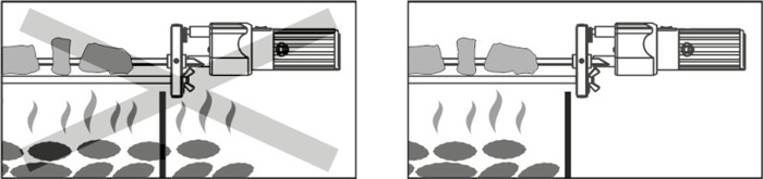 Электропривод (моторчик) должен всегда находится за границей очага (раскаленных углей).