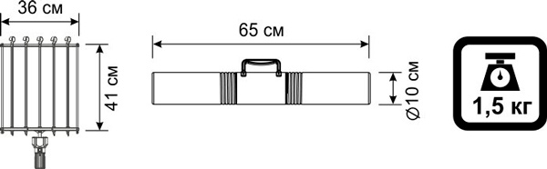 Размеры в тубусе: диаметр — 10 см, длина — 65 см