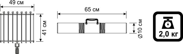 Размеры в тубусе: диаметр — 10 см, длина — 65 см